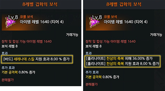 티어 4 보석 '겁화', '작열'이 추가된다. 각각 티어 3의 멸화, 홍염 보석과 같은 종류로, 추가 효과로 '기본 공격력 증가'가 적용된다. 역시 새로운 콘텐츠에서 획득할 수 있으며 티어 3 보석을 티어 4로 계승할 수 있다.