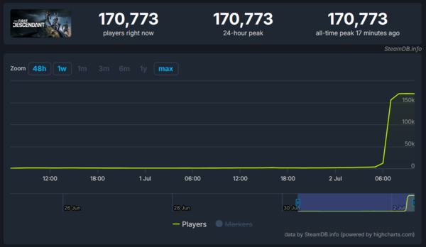이 같은 기대는 출시 이후까지 이어졌다. 출시 직후 스팀의 동시접속자 수는 가파르게 올라 3시간 만에 최고 동시접속자 수 17만 명을 기록했다. 북미 지역에서 새벽 시간에 출시된 점을 고려하면, 피크 타임에는 동시접속자 수가 더욱 증가할 것으로 예상된다.