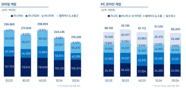 플랫폼별 매출은 모바일 게임 2,182억 원, PC온라인 게임 862억 원을 기록했다. 모바일 게임은 전분기 대비 13% 감소, PC온라인 게임은 전분기 대비 6% 감소했다. 리니지M은 서비스 7주년 업데이트와 리부트 월드 출시 효과로 이용자 지표가 큰 폭으로 증가했다. 개선된 지표는 현재도 견조하게 유지 중이다.