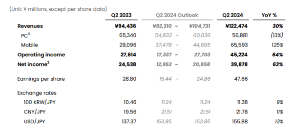 넥슨은 2분기 실적 보고서를 통해 예상을 상회하는 유저 참여도와 수익을 달성했다고 발표했다. 특히 모바일 플랫폼에서 당초 최대 446억 엔으로 전망했던 수익이 실제로는 655억 엔에 달해, 자체 예측치를 크게 웃돌았다.
