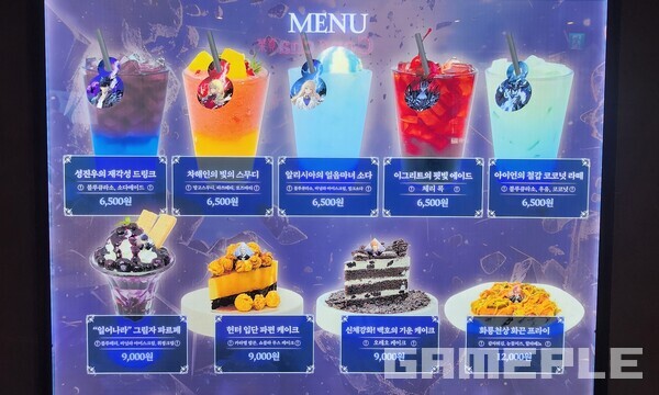 메뉴는 '성진우의 재각성 드링크', '차해인의 빛의 스무디' 등 원작 인기 캐릭터와 들어맞는 구성 및 비주얼로 준비됐다. 메뉴를 주문하면 콜렉팅 카드나 투명 포토카드 등 증정품을 제공하고, 구매 특전을 통해 인게임 쿠폰을 추가 지급하기도 한다.