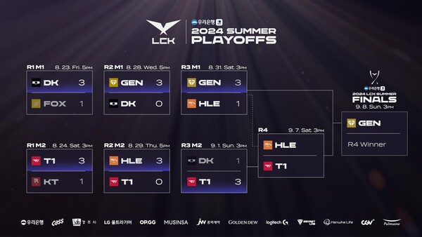 우리은행과 함께하는 2024 LCK 서머 결승 진출전과 결승전이, 9월 7일(토)과 8일(일) 이틀 동안 경상북도 경주시 경주실내체육관에서 펼쳐진다. 젠지는 3연속으로 결승에 직행했으며, 한화생명 e스포츠와 T1이 최종 결승 진출을 놓고 대결한다.