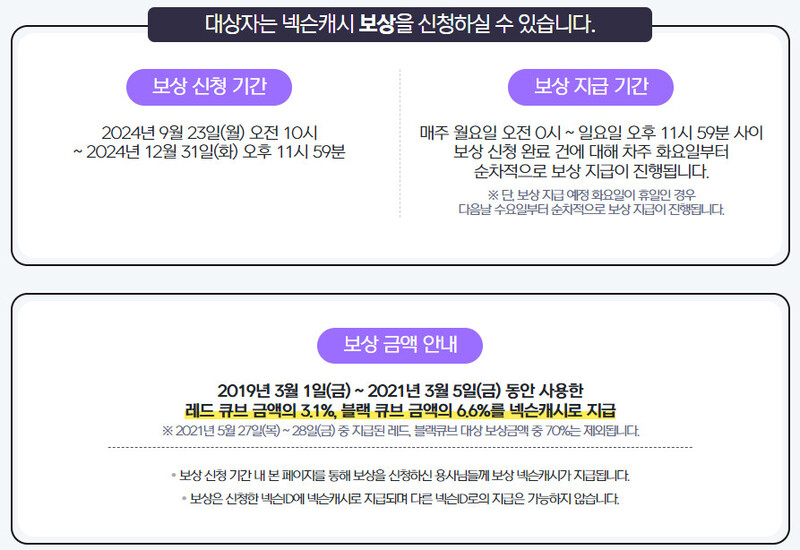 별도의 보상 페이지를 마련했으며, 기존 중재 신청자 외의 대상 유저에게도 환불이 가능한 넥슨캐시를 보상으로 지급할 예정이다. 이에 그치지 않고 홈페이지 메인 보상 안내와 함께 적극적인 홍보로 최대한 많은 유저가 보상 기회를 놓치지 않도록 했다.