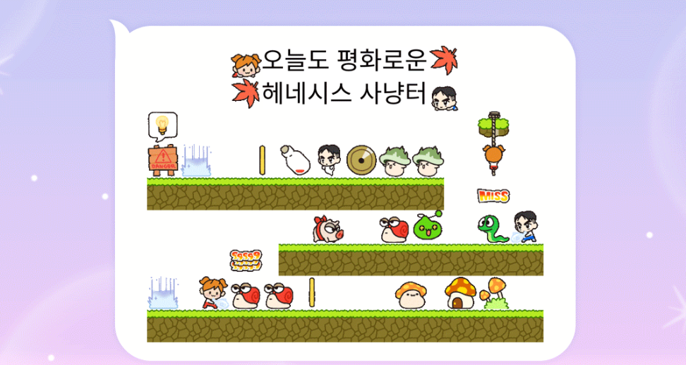 넥슨을 대표하는 '메이플스토리'의 새로운 미니 이모티콘 '매일매일 귀여운 메이플 헤네시스!'가 출시 이틀 만인 26일 카카오 이모티콘샵 인기 순위 차트 상위권에 올랐다. 특히 추억의 헤네시스를 대표하는 이모티콘들로 게이머들의 향수를 자극해 호평받고 있다.