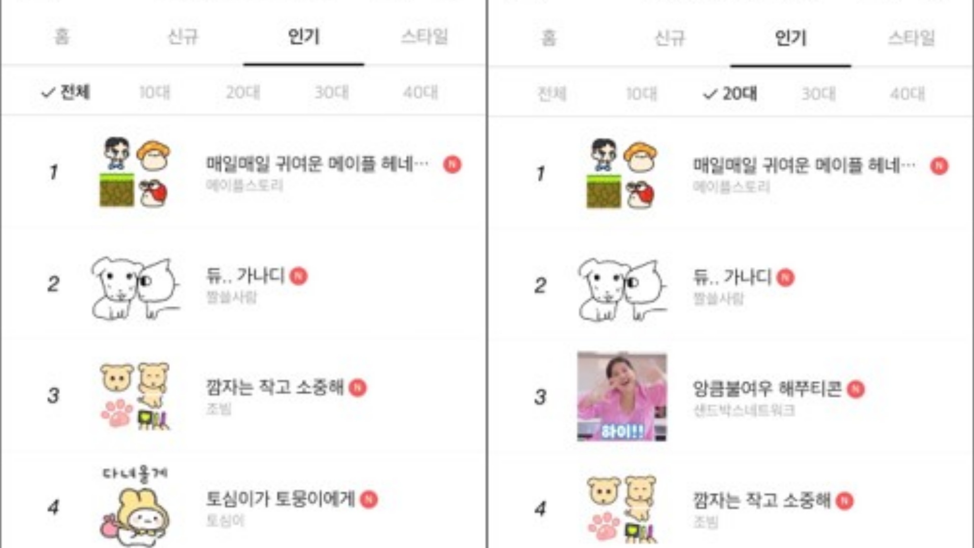미니 이모티콘 출시 이틀 만에 카카오 인기 순위 상위권