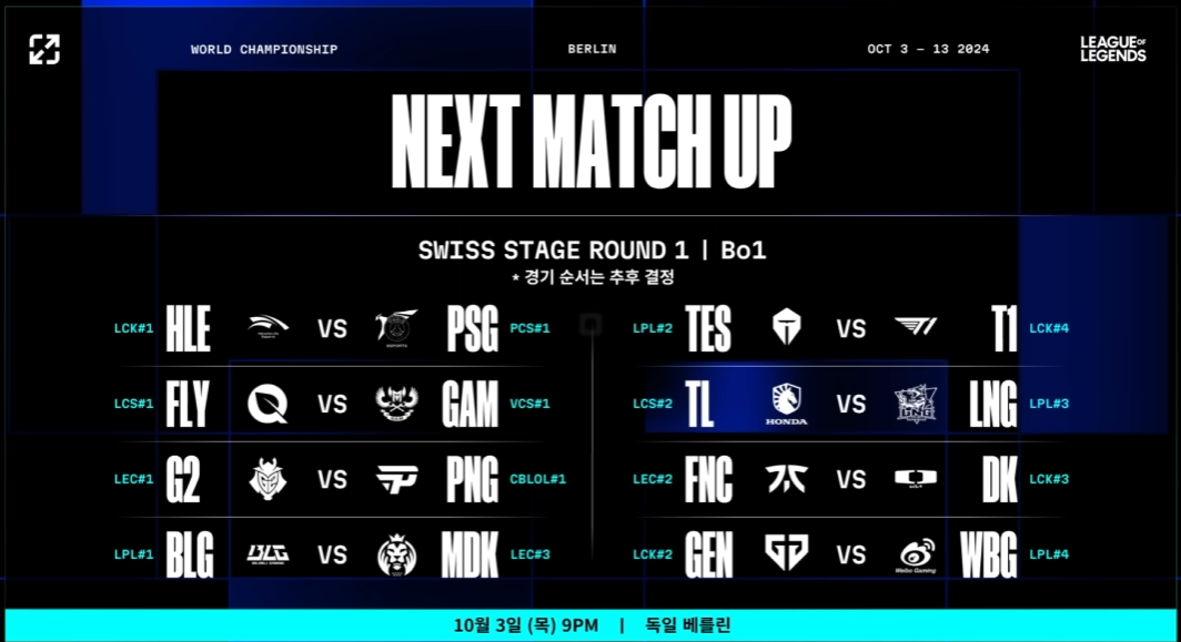 두 팀의 체급차가 드러나게 될 매치업으로 예상된다. PSG 탈론은 PCS(퍼시픽 챔피언 시리즈)의 전통 강호로 이번 2024 서머 시즌에도 정규 1위, 우승으로 리그 성적을 마무리했다. 그러나 플레이-인 스테이지에서도 LEC의 4시드 매드 라이온스 코이에게 1패를 기록해 메이저 4대 지역과의 격차가 드러나기도 했다.