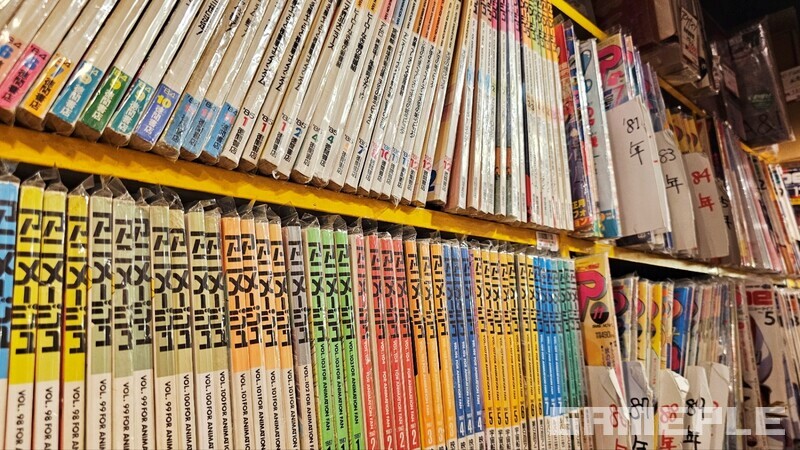 이런 오타쿠들의 기록이, 분야별로 1970년대 이전부터 현재까지 모든 역사를 아우르면서 진열되어 있다. 가장 인상적인 곳이 3층에 자리잡은 서적 매장이다. 수백 개 책장에 만화나 거의 잊혀진 옛 잡지가 도서관처럼 빼곡하다.
