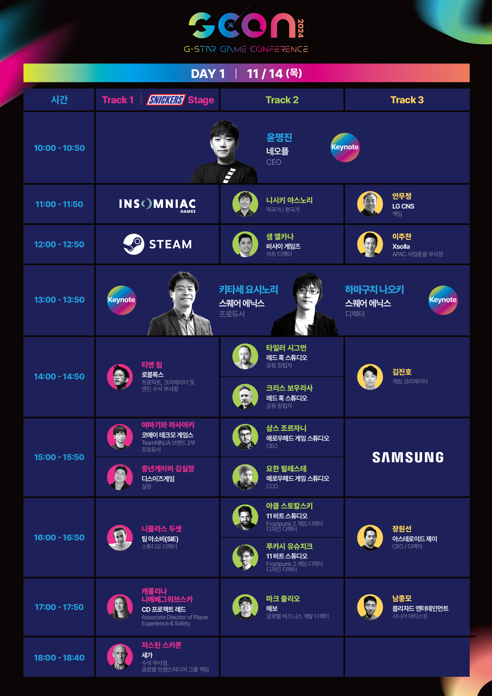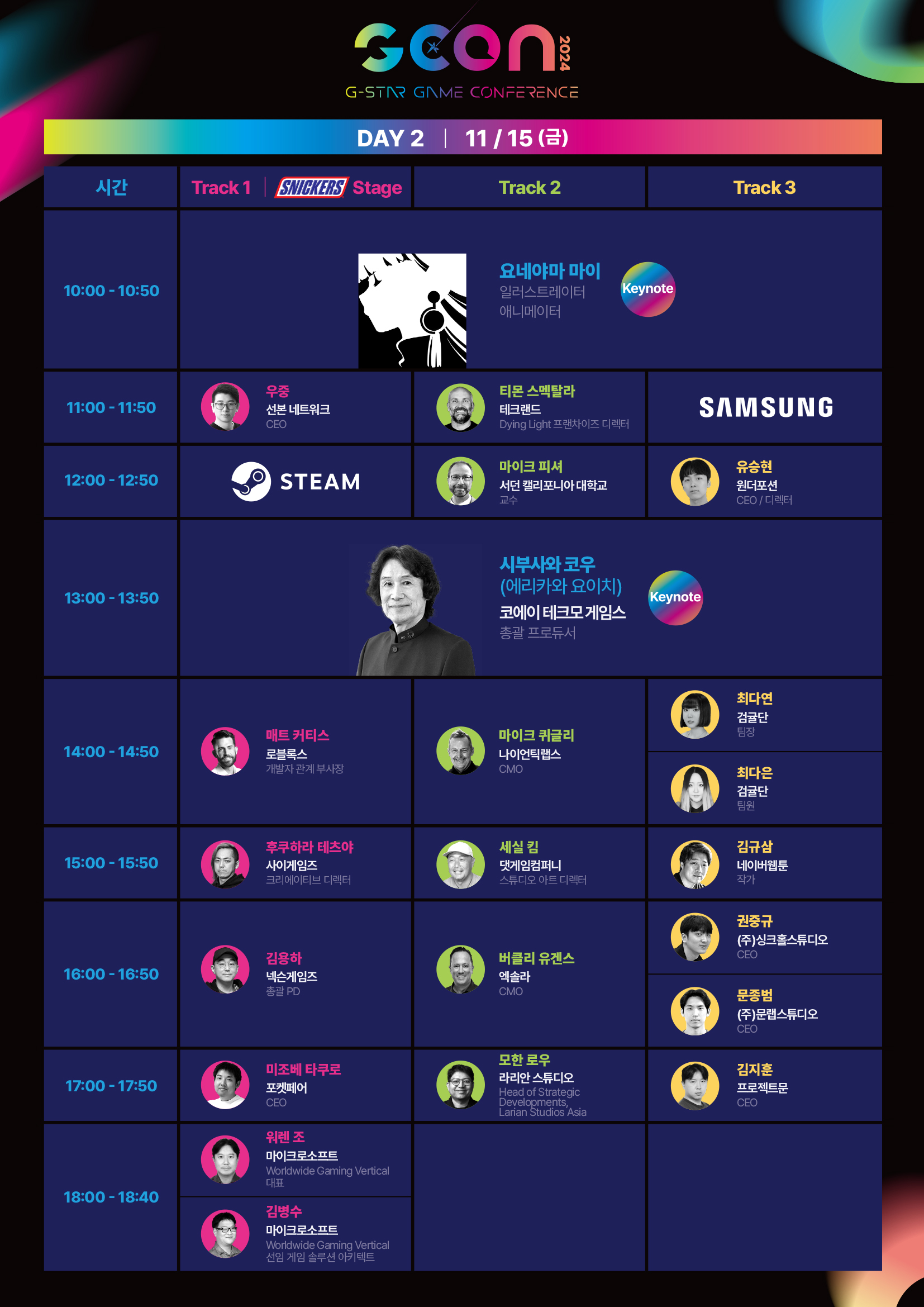 지스타 기간 중 개최되는 국제 게임 컨퍼런스, 통칭 G-CON의 최종 연사와 시간표가 공개되었다.