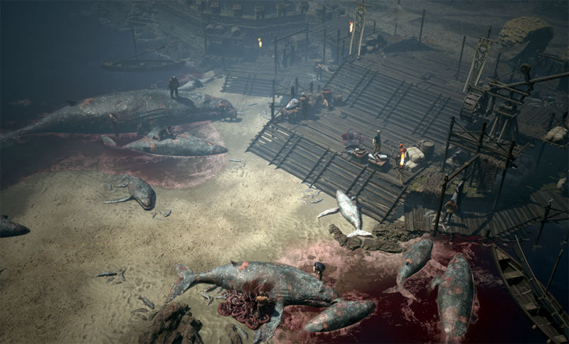방대한 스케일로 구현한 기란에는 여러 요소가 배치됐다. 기란 항구에서는 이곳 인근에서 잡히는 고래를 해체하거나 경매하는 주민들의 모습을 볼 수 있다. 축제의 광장이나 마을 입구에서는 음악을 연주하고 구경하는 사람들, 투견장과 체스장 등을 볼 수 있다.