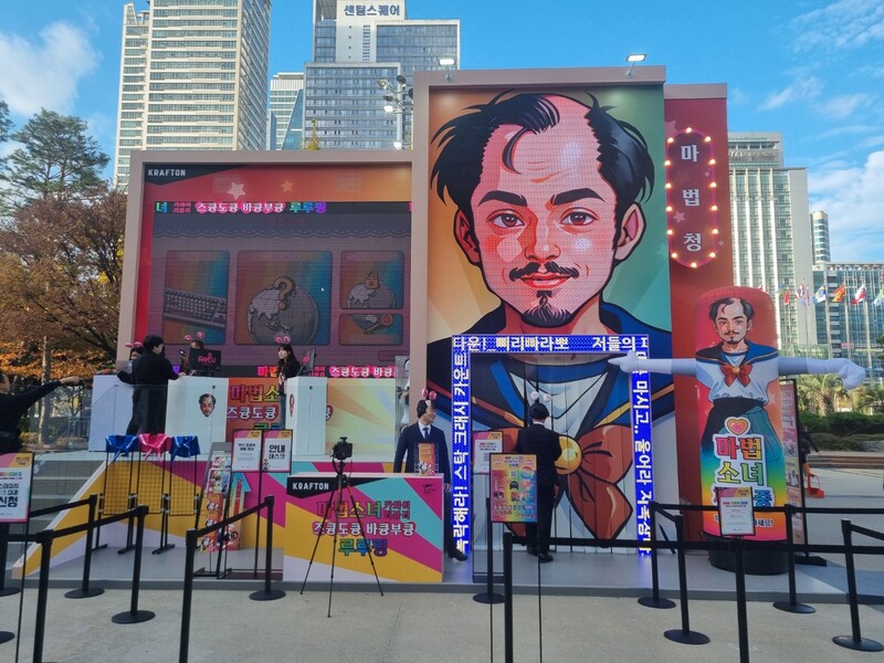 지스타2024의 개막을 앞두고 여러 게임사의 야외 부스 준비가 한창이다. 그중에서도 ‘마법소녀 루루핑’의 야외부스가 시선을 사로잡는다.