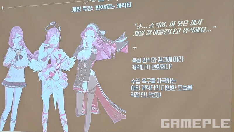 캐릭터 교감도 성향에 맞는 방식으로 선택하며, 육성 결과에 따라 캐릭터의 외형이 변화해 유저 동기를 끌어낸다. 캐릭터마다 특기와 포지션을 가지고 있어 전략적인 전투 구성도 가능하다. "새로운 서브컬처 IP로서 신규 팬덤을 형성하는 것이 목표"다.