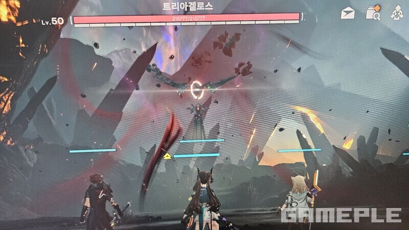 시연은 총 4가지 파트를 플레이할 수 있었다. 기본 이동 방법과 전투 조작을 배우는 첫 파트를 비롯해 임시 스토리를 클리어하고 일부 맵을 돌아다닐 수 있는 탐험 플레이, 높은 난이도의 적 '트리아겔로스'와 대결해볼 수 있는 보스 모드, 그리고 '엔드필드'의 또다른 특징인 자동화 생산 라인을 체험하는 공업 시스템까지 있다.