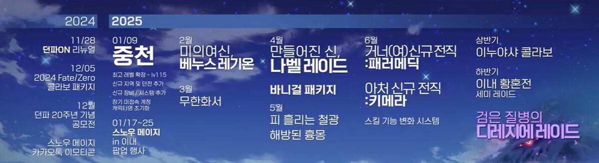 IP 컬래버레이션 소식도 발표했다. 중천 업데이트 이전에는 인기 애니메이션 '페이트 제로' 컬래버 콘텐츠가 복각되며, 내년 4월 업데이트를 목표로 '이누야샤' IP 컬래버 콘텐츠를 새롭게 선보인다.