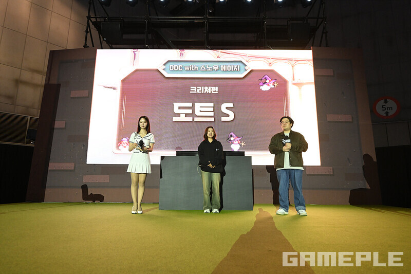 '증폭학 개론' 분위기가 절정에 달하자 깜짝 게스트까지 연이어 등장했다. 네오플 박종민 총괄 디렉터와 김윤희 콘텐츠 디렉터, 네임드 개발자 '쑤남'까지 무대에 올라 14에서 15증폭 시도를 대신 누르면서 모든 시선을 집중시켰다.