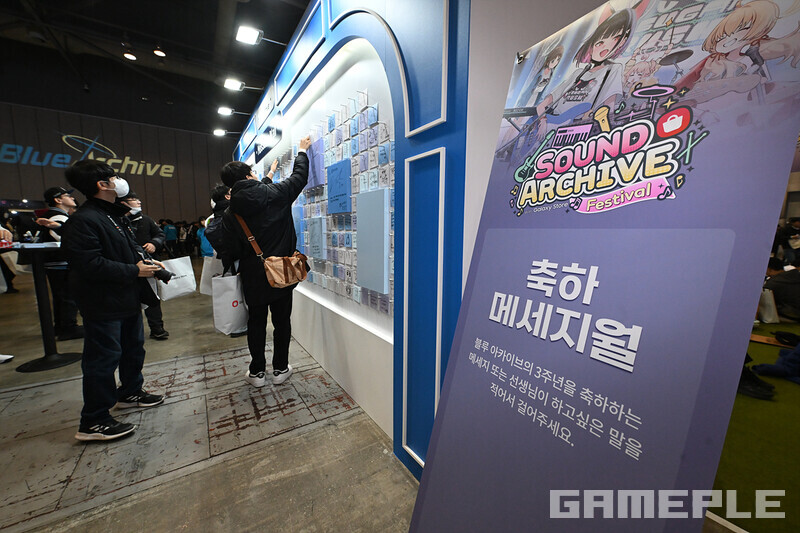 넥슨은 23일 일산 킨텍스에서 '사운드 아카이브' 오프라인 행사를 개최했다. '블루 아카이브'의 글로벌 서비스 3주년을 맞이해 대표 OST 곡들을 감상할 수 있는 무대 공연과 함께 '방과후 디저트부' 포토존, 3주년 축하 메시지 월, 이벤트 부스 등 다양한 즐길 거리를 마련했다.