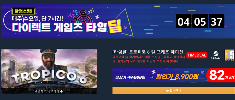 계엄령과 대통령을 향한 논란이 폭발하면서 콘텐츠 업계 전체가 분주해진다. 게임도 빠질 수 없다. 게임 유통사 다이렉트 게임즈는 '트로피코6' 82% 할인을 금일 타임딜로 내걸기도 했다.