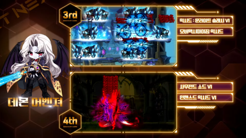 먼저 데몬어벤져는 신규 마스터리 코어 업데이트 이후 뛰어난 성능을 가진 직업으로 평가받는다. 9월 밸런스 패치에서 다시 상향 조정을 거쳐 날개를 달았으며, 환산 주스탯에서 실시한 DPM 챌린지에서 1등을 차지하는 등 압도적인 성능을 보여준다.