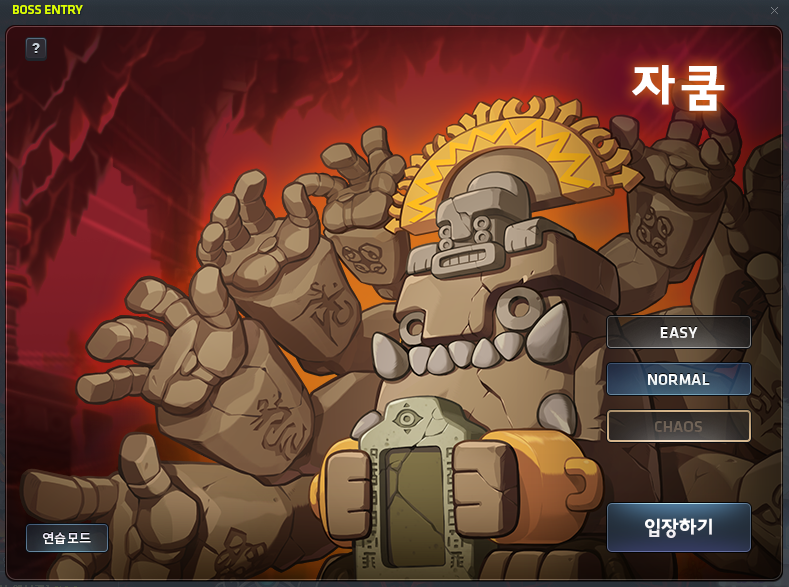 그렇게 아이템 버닝의 첫 번째 미션인 카오스 모드 자쿰에 도전했다. 뉴비답게 보스의 패턴같은 것도 전혀 모르는 상태였다. 그냥 사냥할 때처럼 말뚝딜로 찍어 누르면 잡히겠지, 라고 안일하게 생각했다. 즉사기를 몇번 피하지도 못하고 연달아 5번 죽었다. 자만했다는 걸 깨달았다.