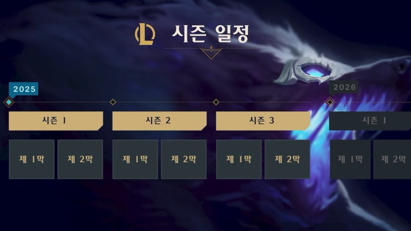 대신 협곡은 여전히 3시즌으로 나뉜다. 인게임 테마와 시스템 자체를 3개의 시즌으로 나눠서 운영한다는 뜻이다. 테마 시즌은 서로 다른 룬테라의 국가들을 배경으로 하고 있으며, 각 시즌은 스토리 액트 1막과 2막으로 나뉜다. 롤 내의 세계관을 조금 더 적극적으로 활용하겠다는 의지가 엿보인다.