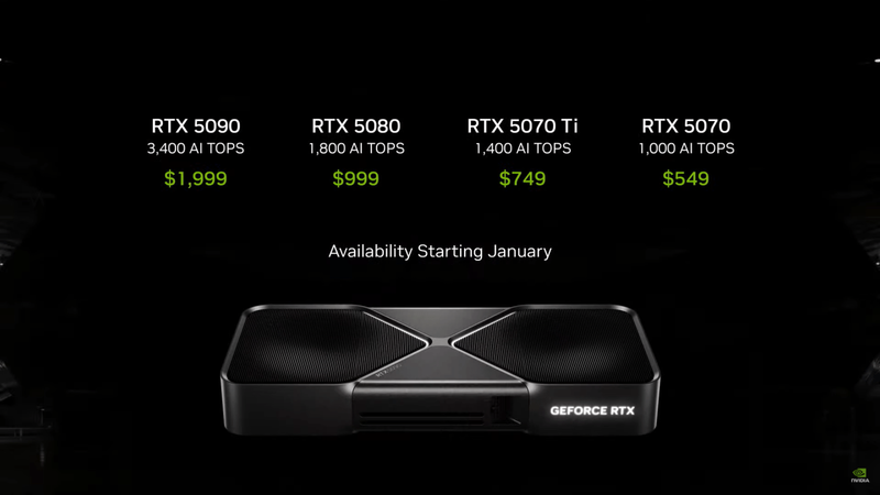 한편 이번 발표의 최대 관심사는 역시 가격이었다. 당초 RTX 5090의 출고가가 최대 2,999달러까지 오를 수도 있다는 부정적인 전망도 나왔다. 바로 이전 세대 하이엔드 제품인 RTX 4090의 레퍼런스 출고가가 1,599달러였던 만큼 “가격이 오를까, 말까”가 아니라, “얼마나 오를까”가 화두였다.