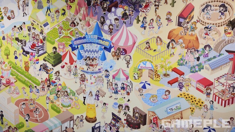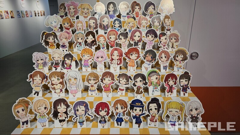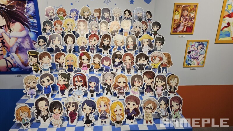 각 속성별로 기둥 위 장식물도 다르기 때문에, 이를 확인하는 것 역시 현장에서 느끼는 소소한 재미다. 푸치마스 버전 SD 캐릭터도 190명 모두 속성별로 진열됐다. 모바마스와 데레스테 모두 SD 캐릭터를 특출나게 잘 쓴 게임이라 과거 기억을 곧장 떠올리게 만든다.