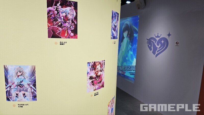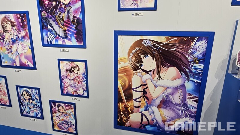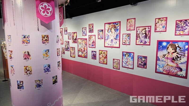 몇 걸음 더 걸으면 전시회 메인 공간이 나온다. IP 3속성인 큐트, 쿨, 패션 아이돌 공간이 각각 분리되어 통일된 색감을 이룬다. 크기와 배치의 차이는 있지만, 모든 아이돌의 카드 일러스트를 한 장씩 꼼꼼하게 담고 있다.
