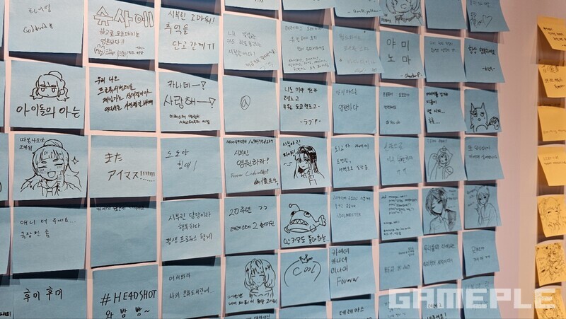 뒤이어 역대 라이브 공연 실물 의상 전시, 관람객들이 애정을 담아 게임과 아이돌에게 메시지를 보낸 포스트 잇 전시가 지나갔다. 포스트 잇은 현장에 구비되어 누구나 작성해 붙일 수 있었고, 고수 프로듀서들의 퀄리티 높은 그림도 곳곳에 나타났다.