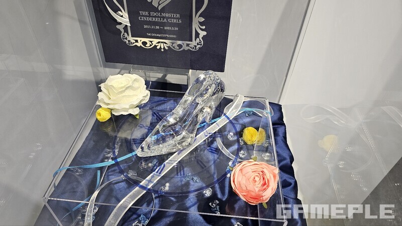 모퉁이를 돌면 게임 속 프로듀서의 책상을 그대로 구현한 전시물과 수없이 마셔온 드링크가 놓여 있다. IP를 대표하는 뉴 제너레이션즈 3인방 판넬, 그 오른쪽으로 모든 캐릭터가 한 번씩 대표 카드 일러스트를 노출하는 전광판이 있다. 신데렐라 걸즈를 대표하는 인기곡들도 꾸준히 들려왔다.