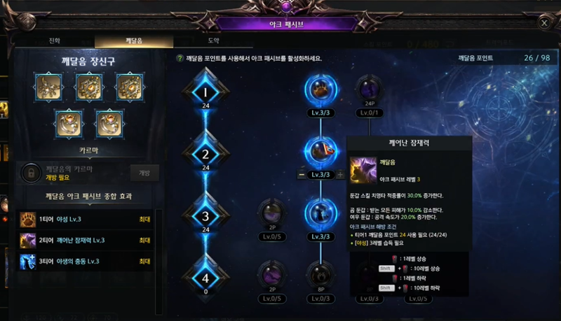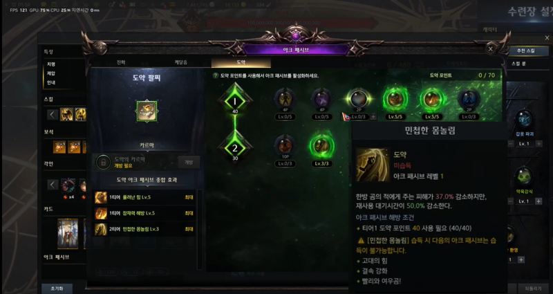 아크패시브 '민첩한 몸놀림', '꺠어난 잠재력' 활용