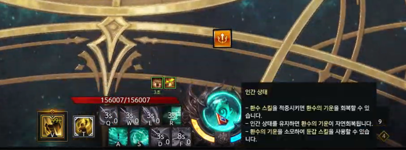 종합해 보면 둔갑 상태에 돌입했을 때 최소한 야성 스택 3중첩을 만들고, 환수 게이지를 채워 Z스킬까지 사용한 다음 인간 상태로 돌아와야 한다. 애매하게 두 가지 스킬만 쓰고 환수의 기운이 부족해 인간 상태로 돌아온다면, 야성 스택도 날리고 스킬 쿨타임도 꼬여서 딜로스로 이어지게 된다.