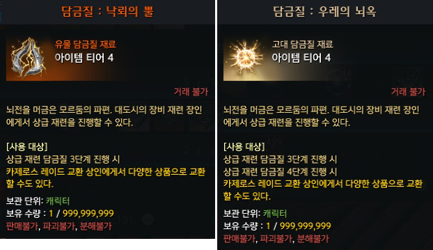 카제로스 레이드 3막 업데이트와 함께 상급 재련 단계도 확장된다. 확장된 상급 재련을 진행하기 위해서는 ‘담금질’이 필요하며, 담금질에 사용되는 재료는 3막 레이드 보상으로 제공될 예정이다.