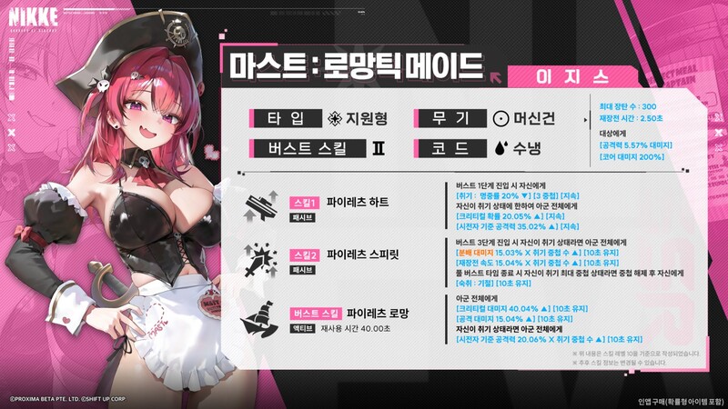 시프트업 '승리의 여신: 니케'가 23일 업데이트 후 신규 니케를 공개했다. 인게임에 30일 열릴 픽업을 설 연휴로 인해 미리 안내한 것. 다음 주 메이드 이벤트 'ROMANTIC VALENTINE'과 '마스트: 로망틱 메이드', 이어 6일부터 '앵커: 이노센트 메이드' 픽업이 실시된다.