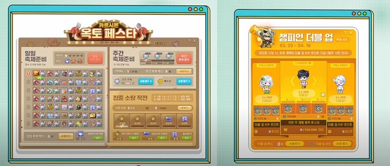 예정된 이벤트로는 추가 아이템 버닝이 제공되는 신규 코인샵 이벤트 ‘카르시온 옥토 페스타’와 본캐의 사냥만으로 2개의 부캐를 자동으로 육성할 수 있는 ‘챔피언 더블 업’이 있다. 특히 ‘챔피언 더블 업’ 이벤트는 챌린저스 월드에서도 함께 진행할 수 있어 유저들의 긍정적인 반응을 얻었다.