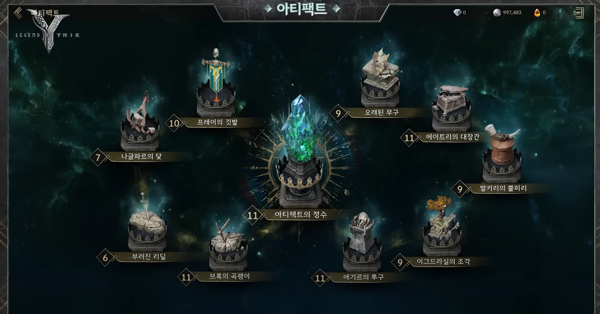 '아티팩트'는 플레이어의 게임 내 활동이 성장으로 이어지는 독창적인 콘텐츠다. 던전 탐험, 전투, 원정 등 다양한 콘텐츠를 즐기는 것만으로도 아티팩트 복원이 진행되며, 이를 통해 캐릭터의 능력치가 상승한다. 즉, 꾸준한 플레이가 캐릭터 성장에 직접적인 영향을 미친다.