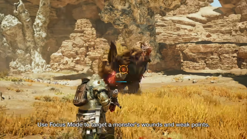 집중 모드는 공격이나 가드의 조준을 한 상태로, 집중 모드를 발동하면 상처 부위나 빨갛게 변한 약점이 강조 표시되어 노리기 쉬워진다.