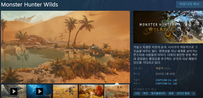 캡콤이 개발한 헌팅 액션 대작 '몬스터헌터 와일즈'가 PC 버전 출시와 동시에 스팀 동시접속자가 100만 명에 육박했다. 콘솔과 별개 숫자이며, 콘솔에 비해 출시 시간도 불리했기에 더욱 놀라운 성적이다.