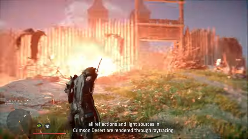 공개된 영상에서는 폭발 이펙트와 강물 표현을 강조하는 장면, 이에 더해 캐릭터와 배경 등 디테일을 선보였다. 펄어비스는 '붉은사막'에서 볼 수 있는 디테일들이 라데온 9070XT의 레이트레이싱 기술을 통해 구현되며 반딧불이나 검의 불똥 같은 세세한 부분까지 적용됐다고 전했다.