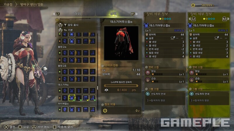 이런 여정 끝에 원하는 데스기어 장비를 모두 구매했다면 '덧입기'를 활용해 옷을 맞추면 된다. 몬스터헌터는 '룩질'을 위해 굳이 직접 장착할 필요가 없다.