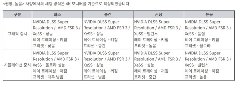 설정별 세부 사양 공개, 최저 옵션 RTX 2060, 최고는 '4080'