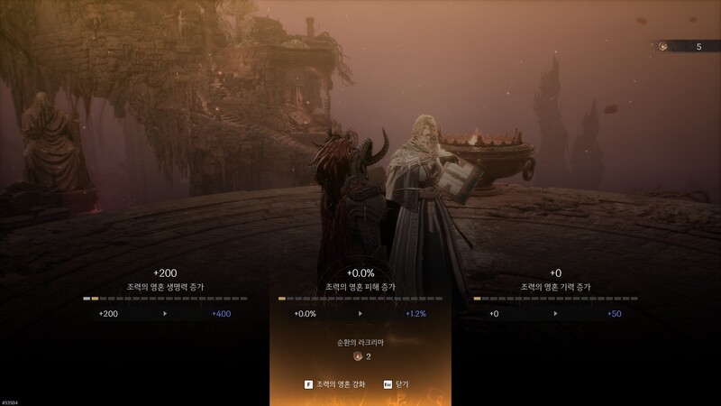 다만, 조력의 영혼 또한 성장이 가능하다. 맵에 등장하는 ‘도전의 영혼’을 처치하면 ‘순환의 라크리마’를 획득할 수 있고, 얻은 순환의 라크리마는 조력의 영혼 강화에 소모된다. 조력의 영혼은 경계의 틈에 있는 NPC 다프로나를 통해 강화할 수 있으며, 생명력, 피해, 기력을 증가시킬 수 있다.
