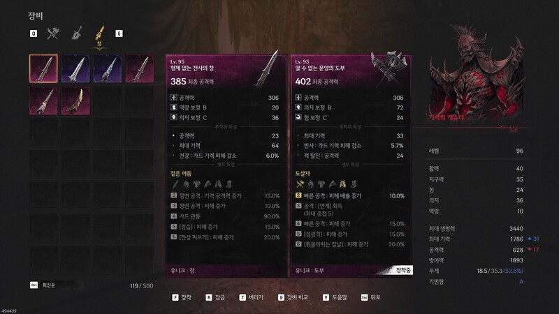 힘, 의지, 역량은 '무기에 맞는' 스탯 위주로
