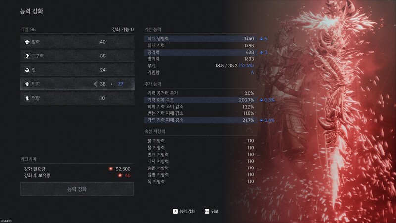 지구력과 활력을 올려 기본을 갖췄다면, 공격력을 올릴 차례다. 힘, 의지, 역량이 공격력을 올려주는 능력치다. 다만, 같은 능력치라도 장착한 무기 종류에 따라 공격력 증가량이 달라진다. 이는 '능력치 보정' 시스템 때문이다.