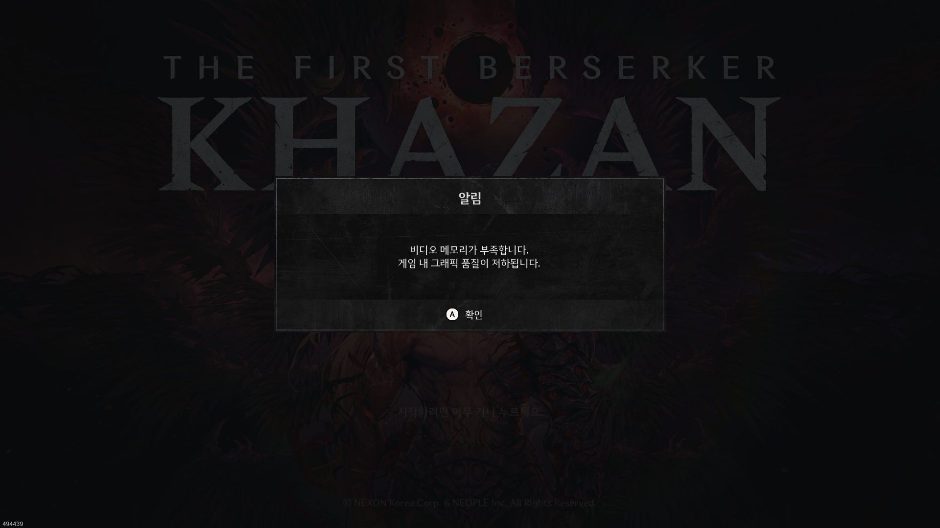 게임을 시작하면 먼저 비디오 메모리에 대한 경고가 뜬다. 게임 구동에 대해 장담할 수 없다는 표시로 받아들였고, 중간 품질 그래픽 옵션을 먼저 적용했다.