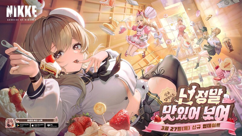 '승리의 여신: 니케'가 27일 업데이트로 'NEW FLAVOR' 스토리 이벤트와 신규 캐릭터를 추가한다. 쿠킹오일 스쿼드가 처음으로 등장하고, 소속 니케 '브래디' 픽업을 서버 점검이 종료된 뒤 이용할 수 있다. 개발이 길어졌던 챔피언 아레나 베타 시즌도 이번 업데이트부터 사용 가능하다.