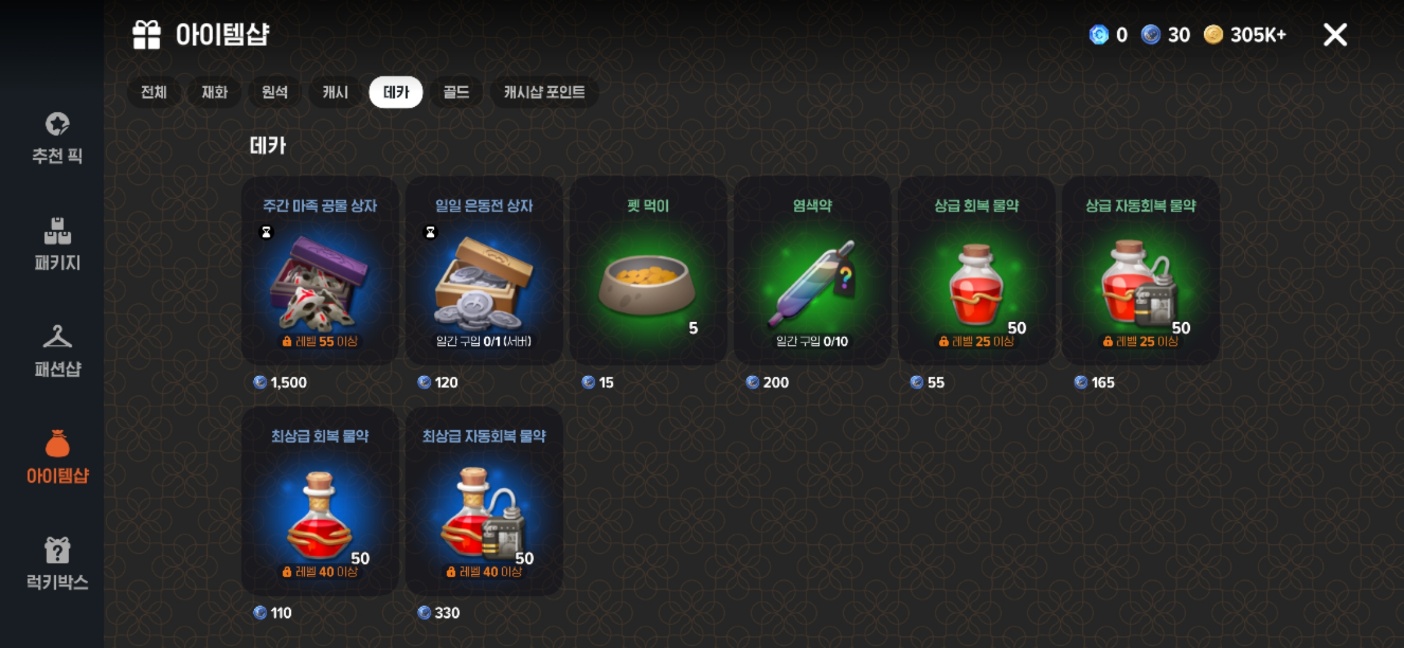 경쟁 요소가 특별히 없어 과금에는 크게 신경 쓰지 않아도 된다. 빠르게 능력치를 올리거나 예쁜 아이템을 가지고 싶다면 그때 패키지 등을 천천히 살펴보면 된다. 다양한 패키지가 준비돼 있어 자신에게 맞는 것을 구매할 수 있다.