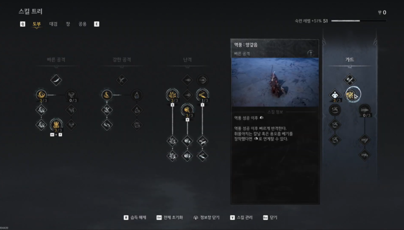 2. 반격기 '역풍: 앙갚음'은 선택한 빠른 공격 스킬트리와 연계되므로 필수