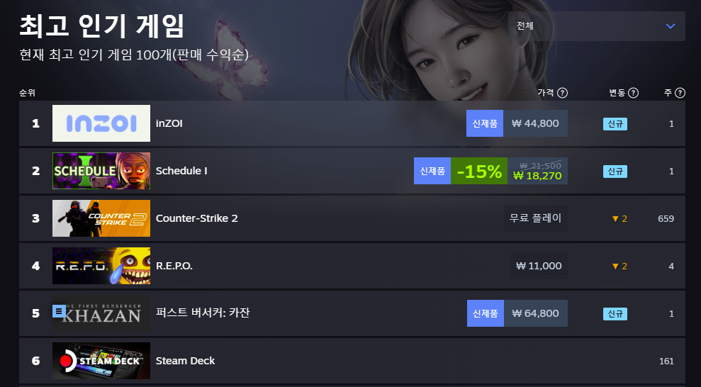 28일 9시 30분경, 인조이는 스팀 전체 지역 인기 게임 순위에 이름을 올렸다. 해외 주요 게임 시장으로 꼽히는 미국, 중국, 영국에서 동시에 1위로 올라갔으며, 특히 중국 시장 1위로 인해 흥행에 파란불이 켜졌다.