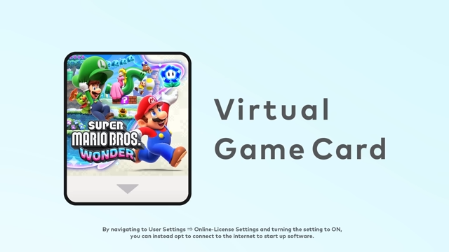 가상 게임 카드를 기기에 불러오면 인터넷에 연결하지 않아도 게임을 플레이할 수 있으며, 다른 계정에서도 게임을 플레이할 수 있다는 것이 닌텐도의 설명이다. 닌텐도 웹사이트의 닌텐도 계정을 통해 가상 게임 카드를 관리하고 불러올 수도 있다.