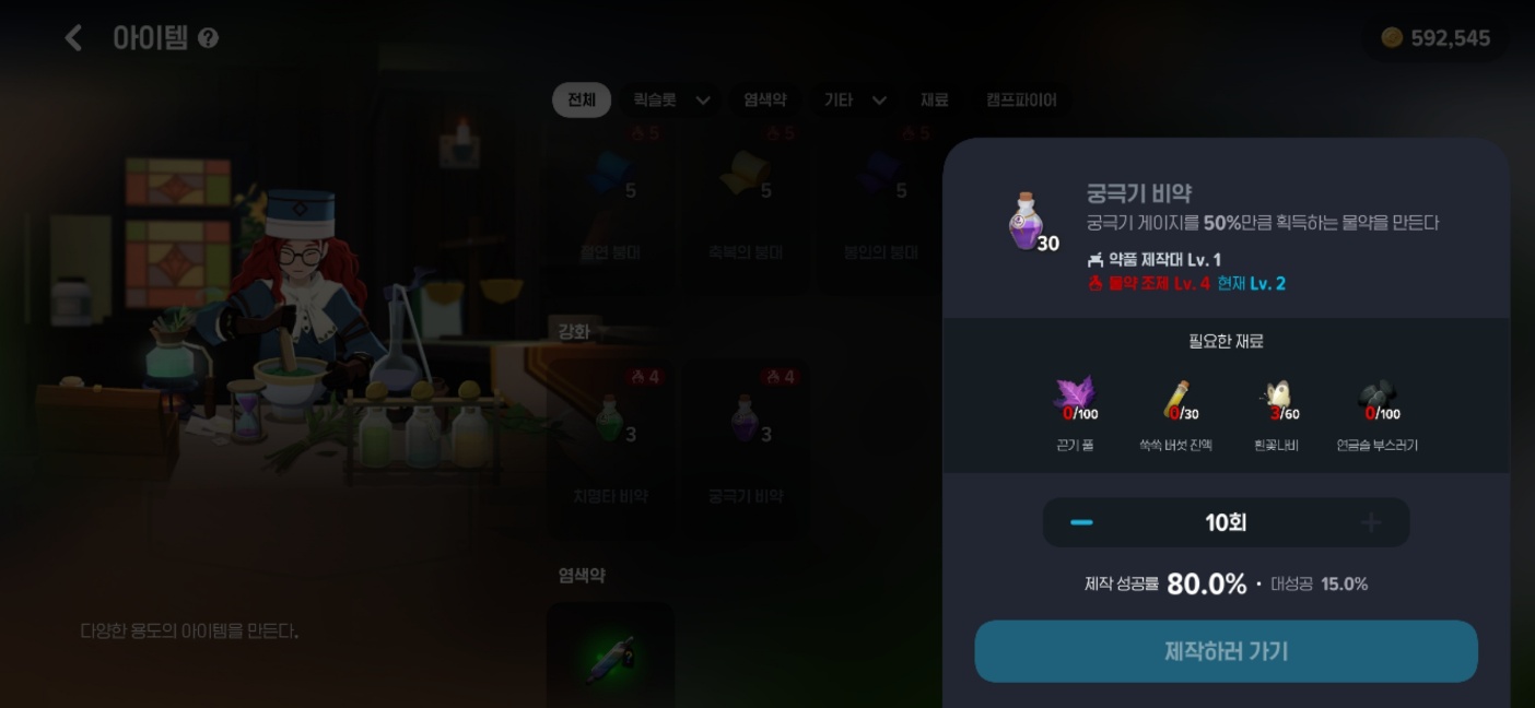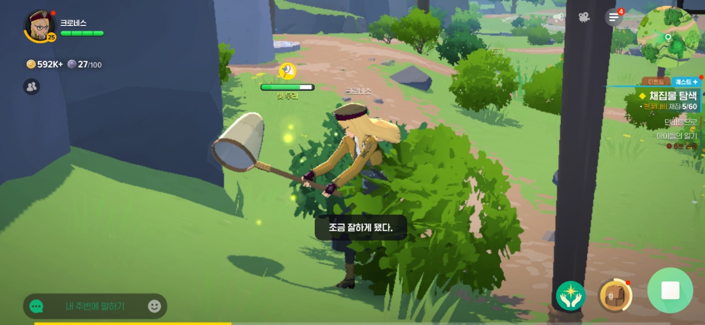 전투보다는 채집이 자동 플레이에 더 효율적이기에 지금은 채집을 통한 생활 레벨을 올리는 것에 집중해야 할 것으로 보인다. 이를 활용하면 퀘스트나 전투, 혹은 커뮤니케이션에 더 집중할 수 있는 시간을 만들 수 있을 것으로 보인다.