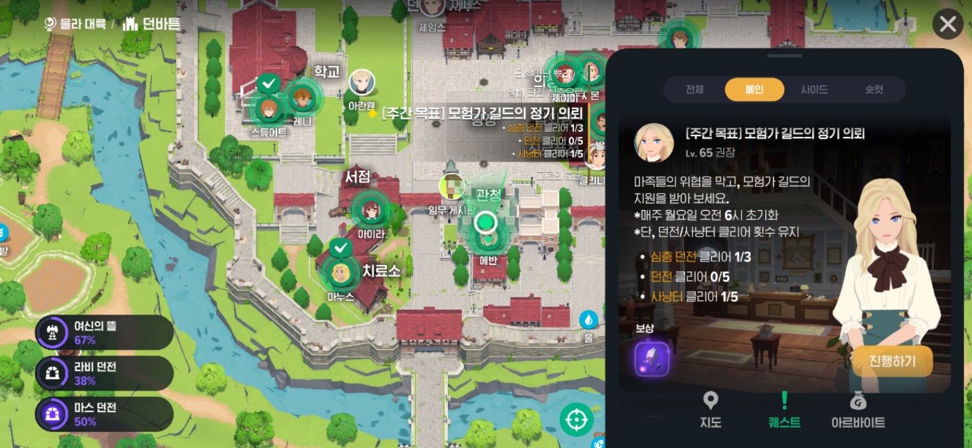 - 주간 목표: 메인 퀘스트에서 확인 가능